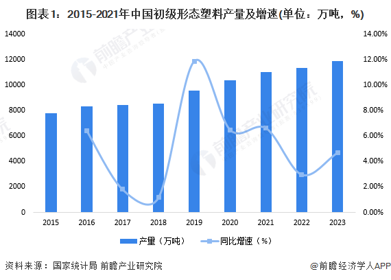 2015-2023年,我國初級形態塑料產量逐漸增加。2023年全國初級形態塑料產量為11901.84萬噸,同比增長4.71%。