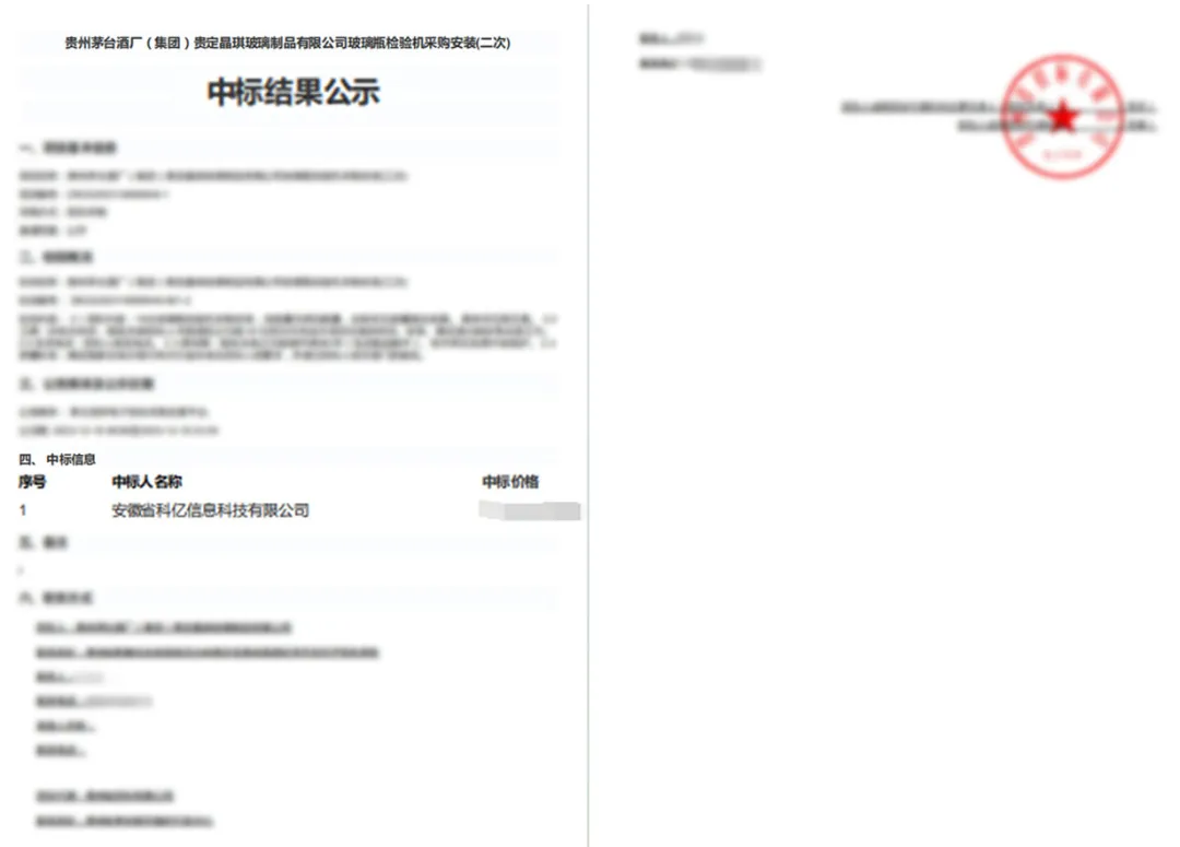 2024年來臨之際,捷報頻傳,科億科技再獲全球500強認可——實力中標茅臺集團10臺玻璃瓶檢驗機項目!